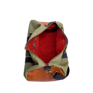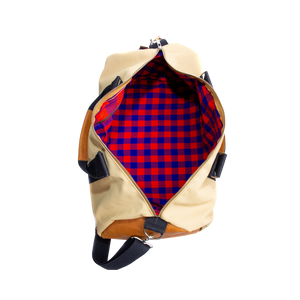 Our polished and rugged duffle bags will be perfect to take on any safari (Swahili word for trip or journey) from a short weekend getaway to a business trip, or even a safari to visit Africa! Made from our quality leather and durable ripstop and lined with Kenya's iconic Maasai Shuka (Swahili for blanket) this bag will accompany you on many adventures!
